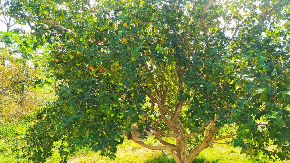 Uma vasta variedade de árvores frutíferas em plena produção