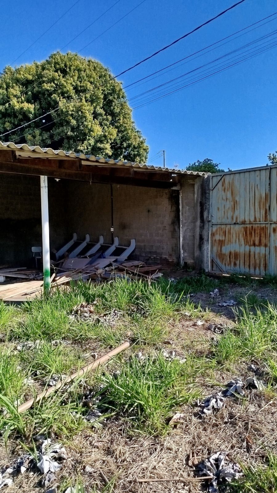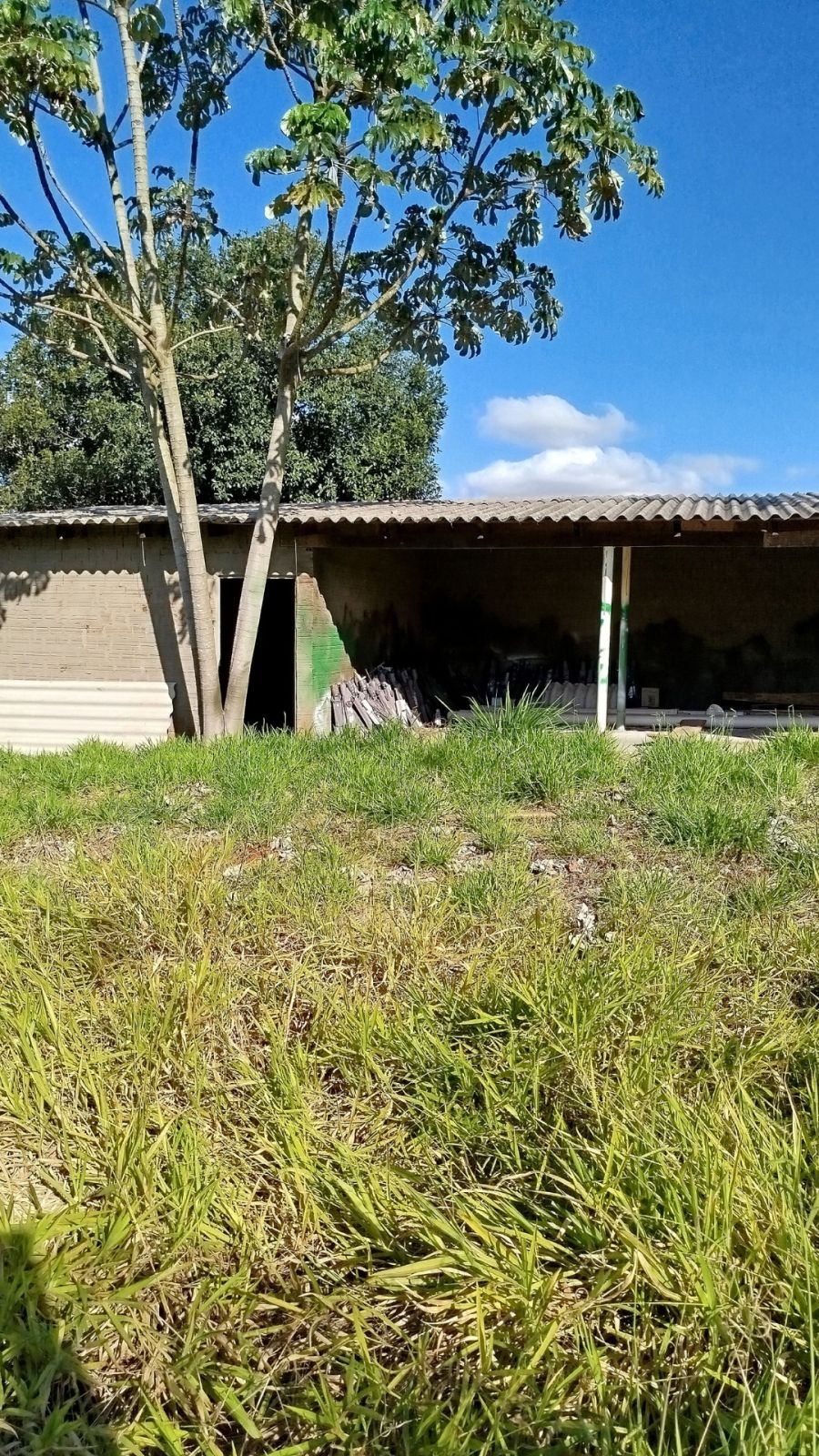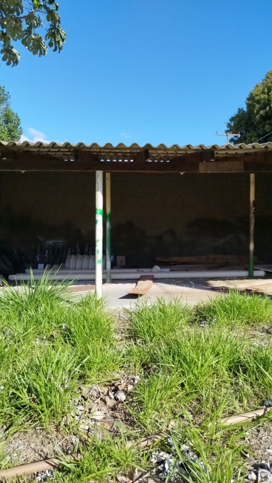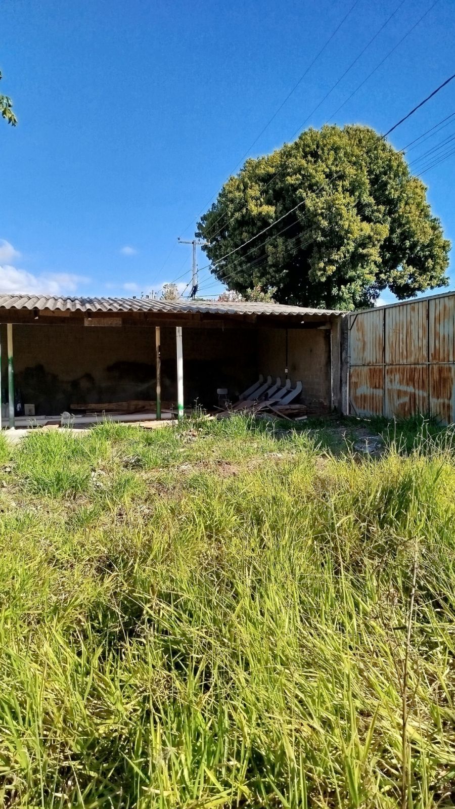 O imóvel conta com uma construção tipo área de serviço de aproximadamente 75 metros quadrados, com cobertura em brasilit.