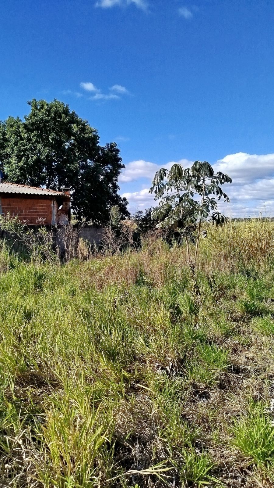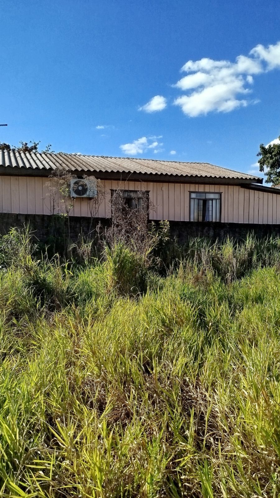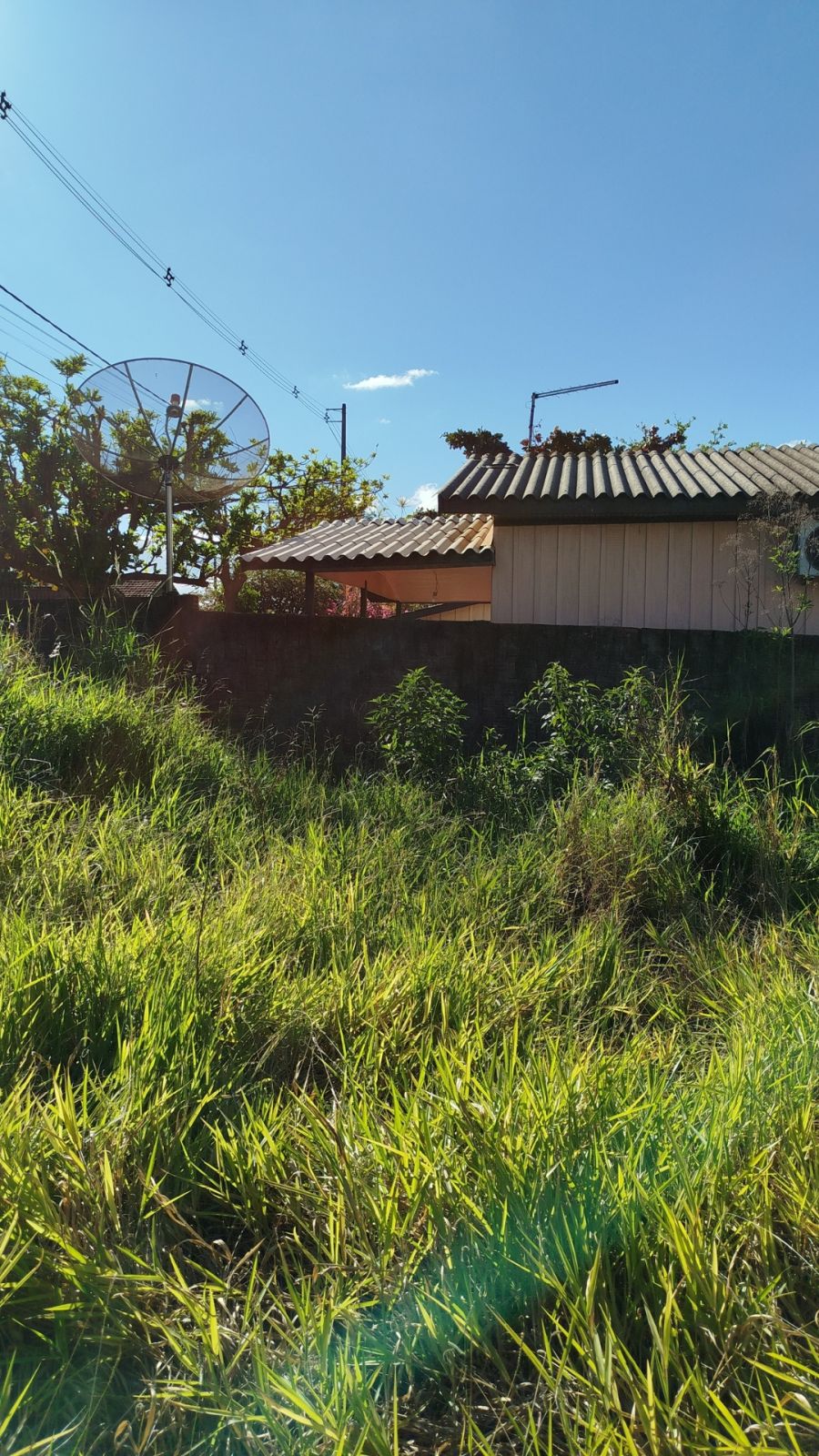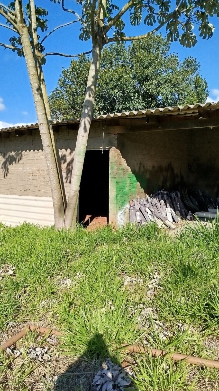 O imóvel conta com uma construção tipo área de serviço de aproximadamente 75 metros quadrados, com cobertura em brasilit.