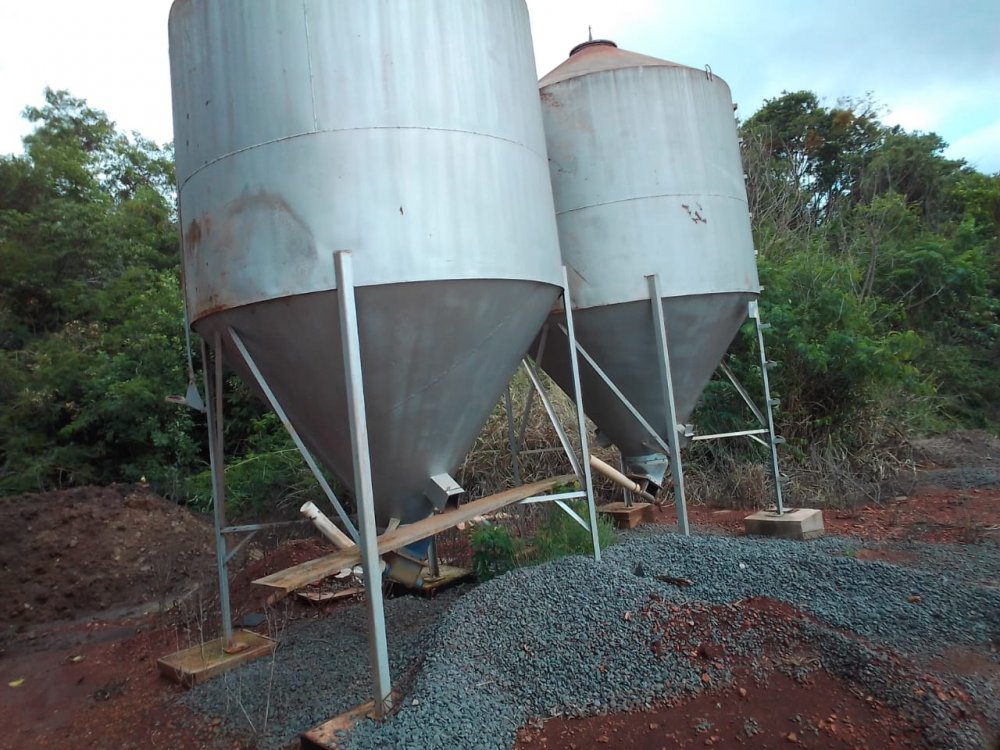 Para facilitar a alimentação de peixe, a propriedade conta com dois silos prontos e postes para aeradores. Tudo foi planejado para garantir a produtividade e rendimento ao proprietário.